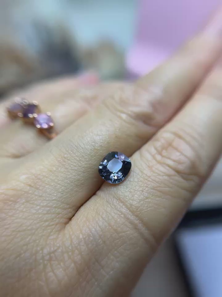 「Ink Gray」プラチナグレースピネル/1.77ct/クッション/ミャンマー