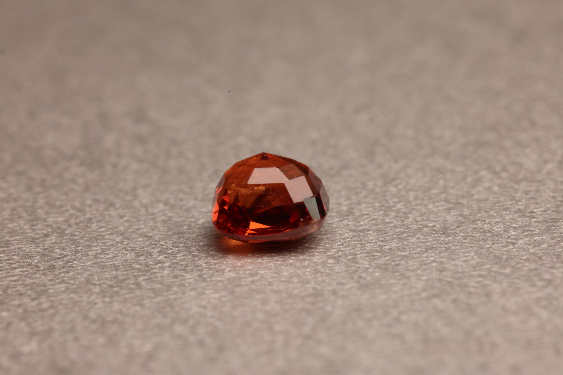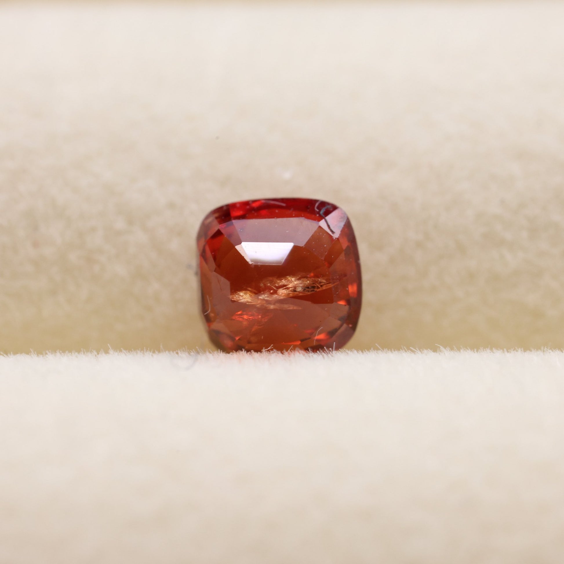 ガードル付近とキューレット付近のインクルージョンが目立ちますが、少しとろみを感じる美しいオレンジレッドです。