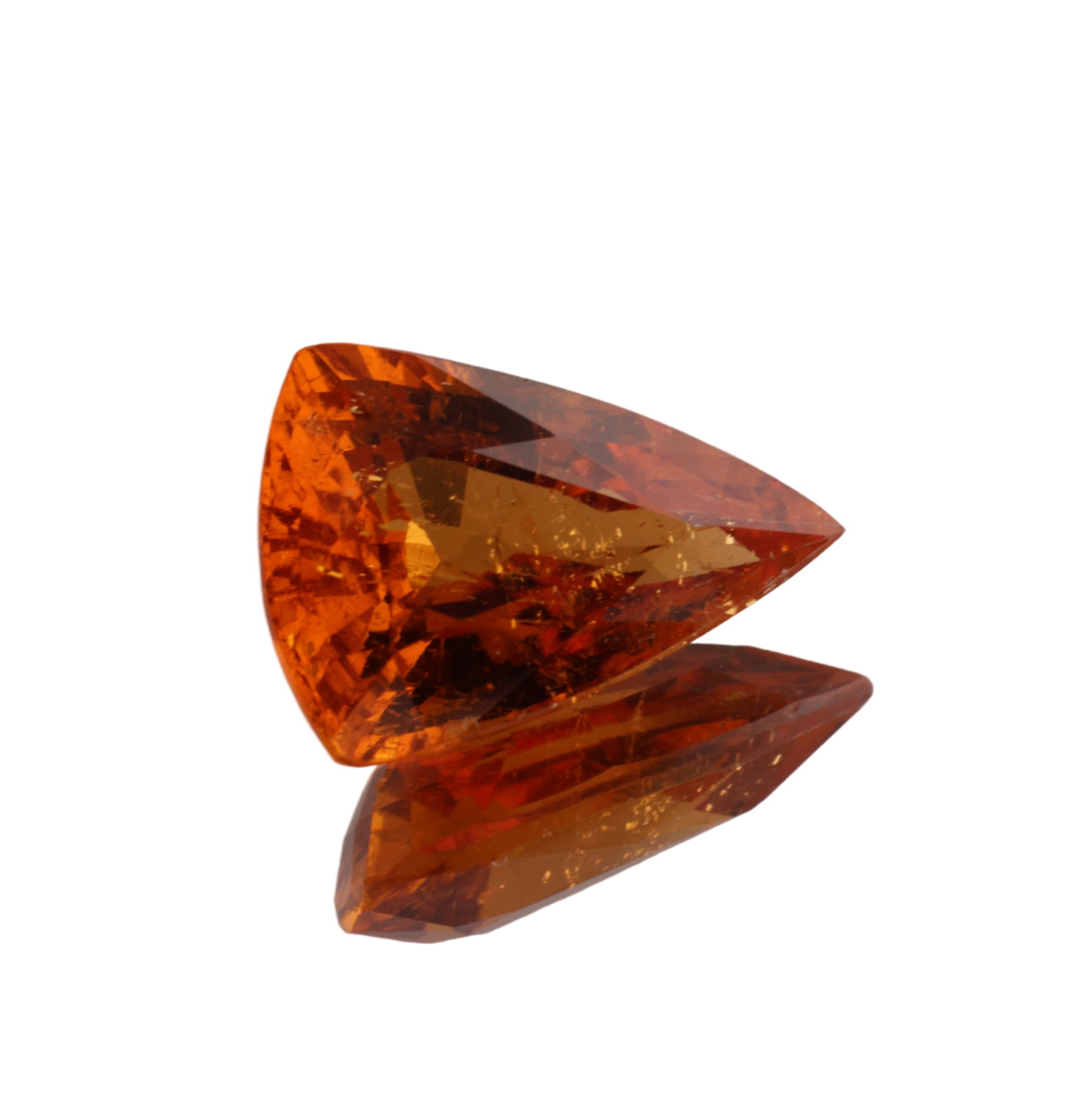スペサタイトならではの深い橙色が、石の内部からじんわりと滲み出すようです。内包されたきらめきが静かに明滅し、炎の残像のような印象を残します。